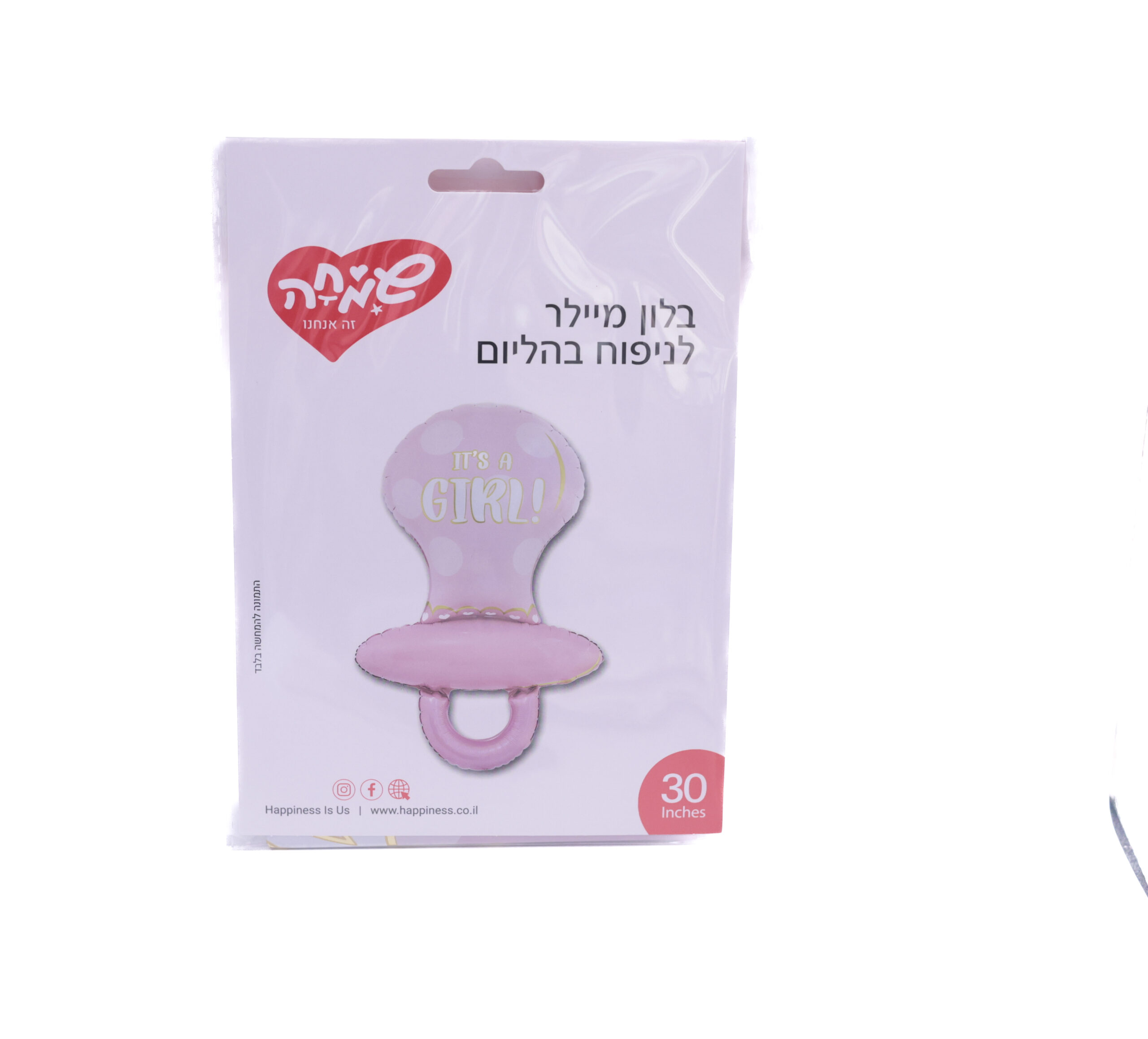 בלון הליום בצורת מוצץ ורוד להולדת הבת