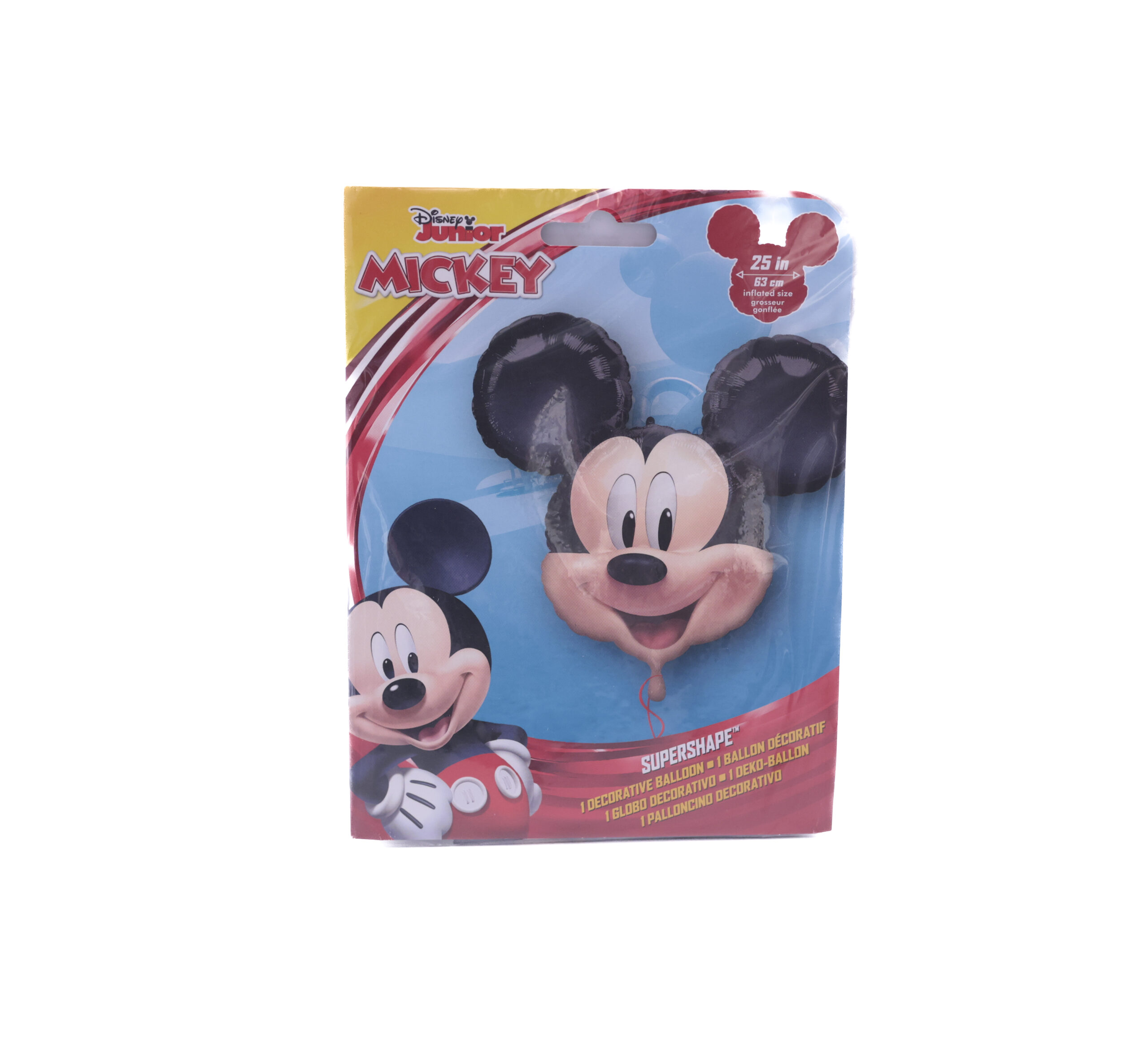 בלון הליום צבעוני בעיצוב הדמות האהובה מיקי מאוס, גודל 25',מושלם להוספת שמחה וצבע לכל יום הולדת או חגיגה לילדים.מגיע מנופח בהליום ומוכן למסיבה,משתלב נהדר עם זרי בלונים,שולחן יום הולדת ומארזי מתנה