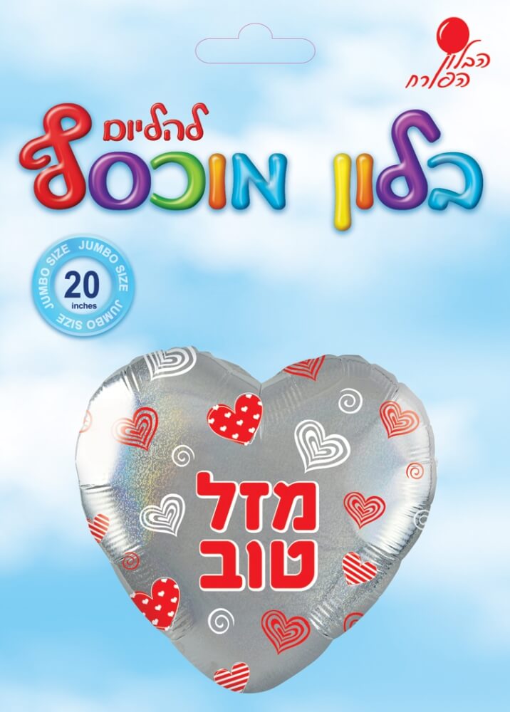 בלון מיילר לב כסוף אדום מזל טוב 18 אינץ'