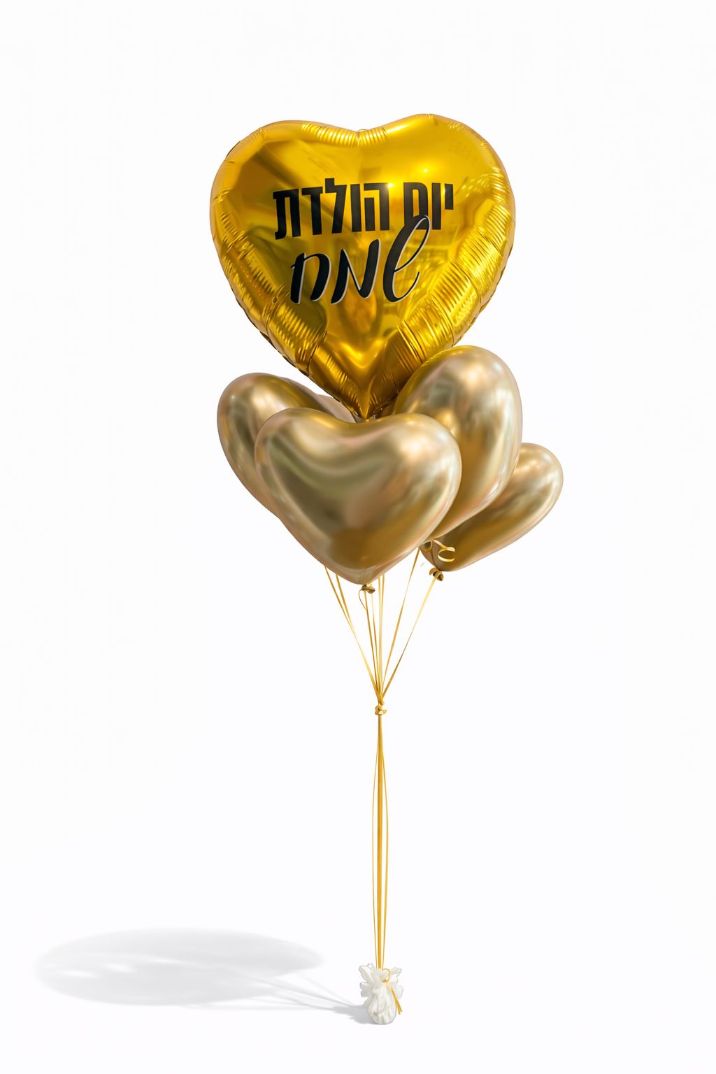 שילוב של בלון לב מרכזי עם כיתוב “יום הולדת שמח” יחד עם בלוני כרום זהב נוצצים – יוצרים מראה יוקרתי שלא נשאר אדיש