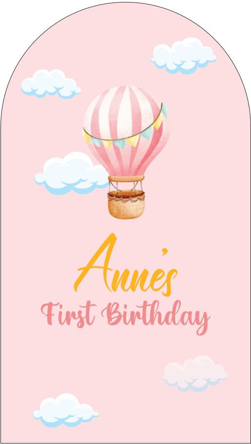 קיר קאפה בעיצוב כדור פורח עם גרפיקה עדינה ומתו'ה הכוללת כדור פורח צבעוני,עננים ואלמנטים שמחים המתאימים במיוחד לחגיגת יום הולדת לילדים.