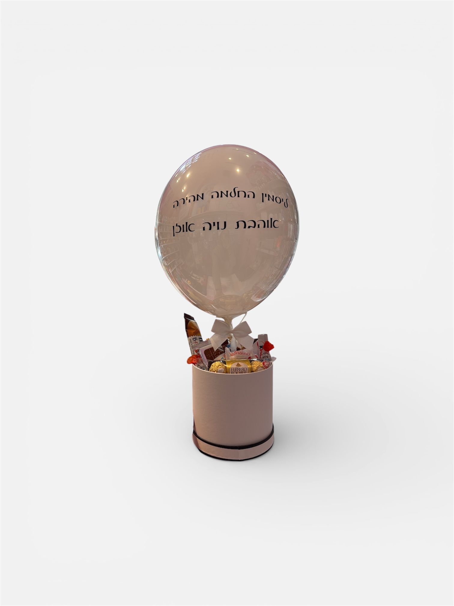מארז מתוק ומרגש הכולל קופסה אלגנטית מלאה במבחר שוקולדים וחטיפים אהובים עם בלון בובו בגודל 12 אינץ׳ עם כיתוב אישי