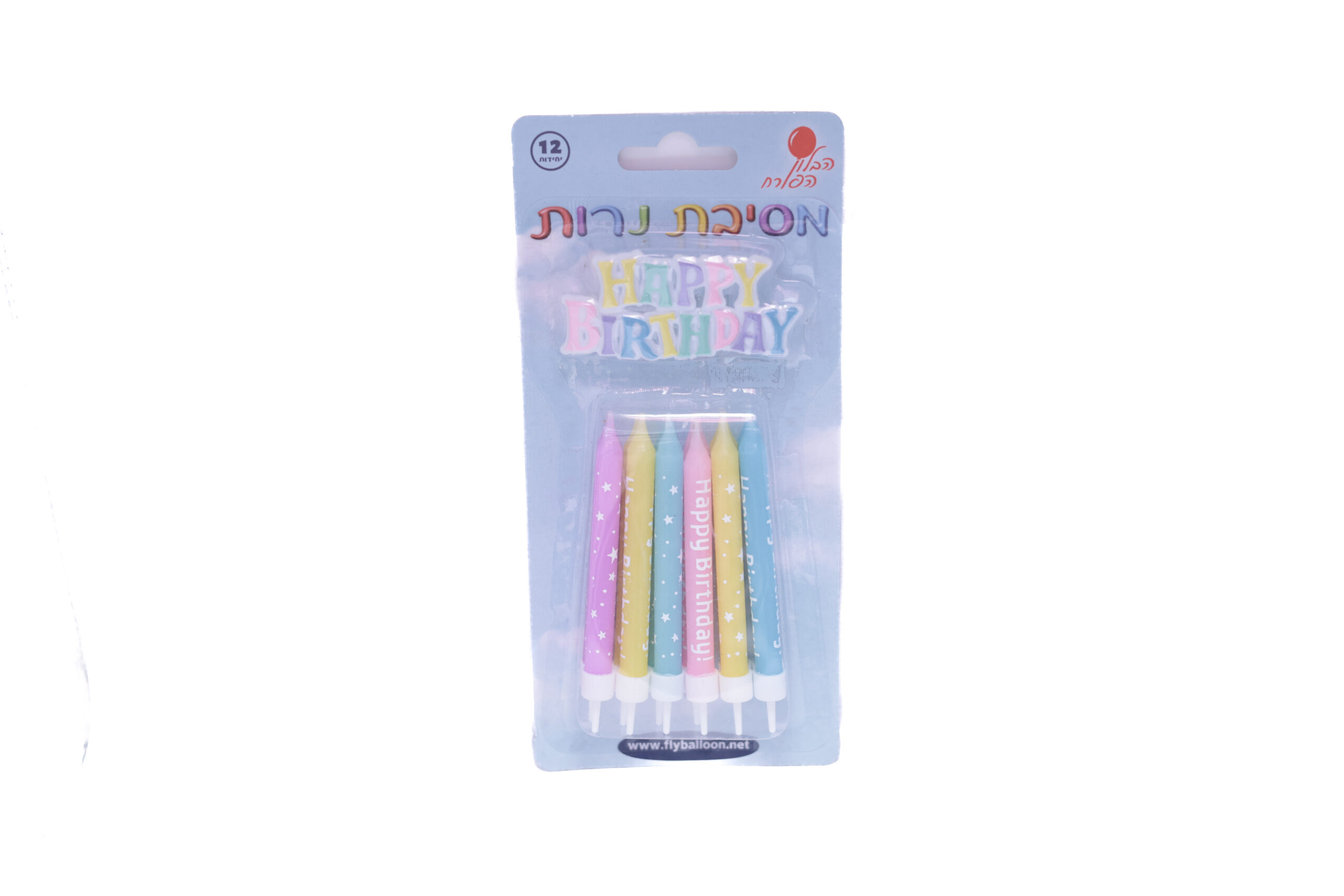חבילת 12 נרות יום הולדת מעוצבים במגוון צבעים