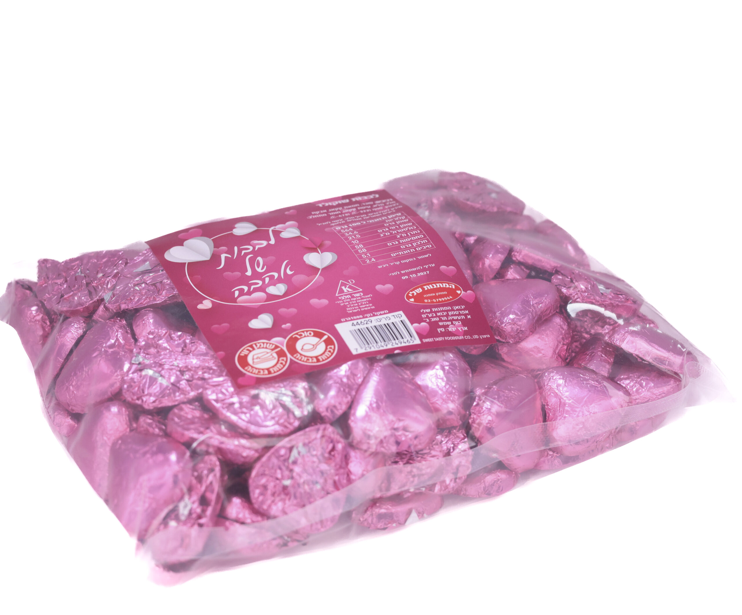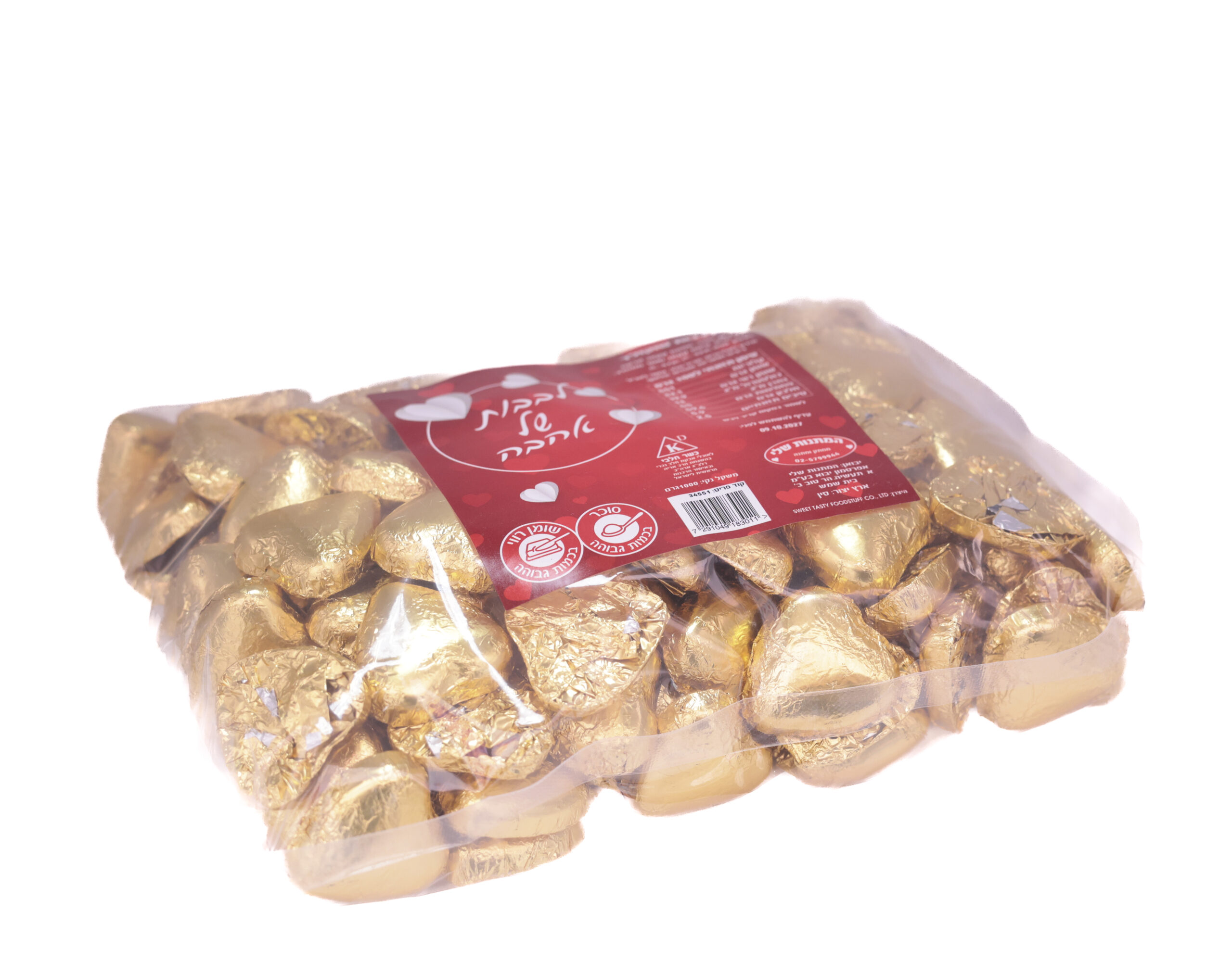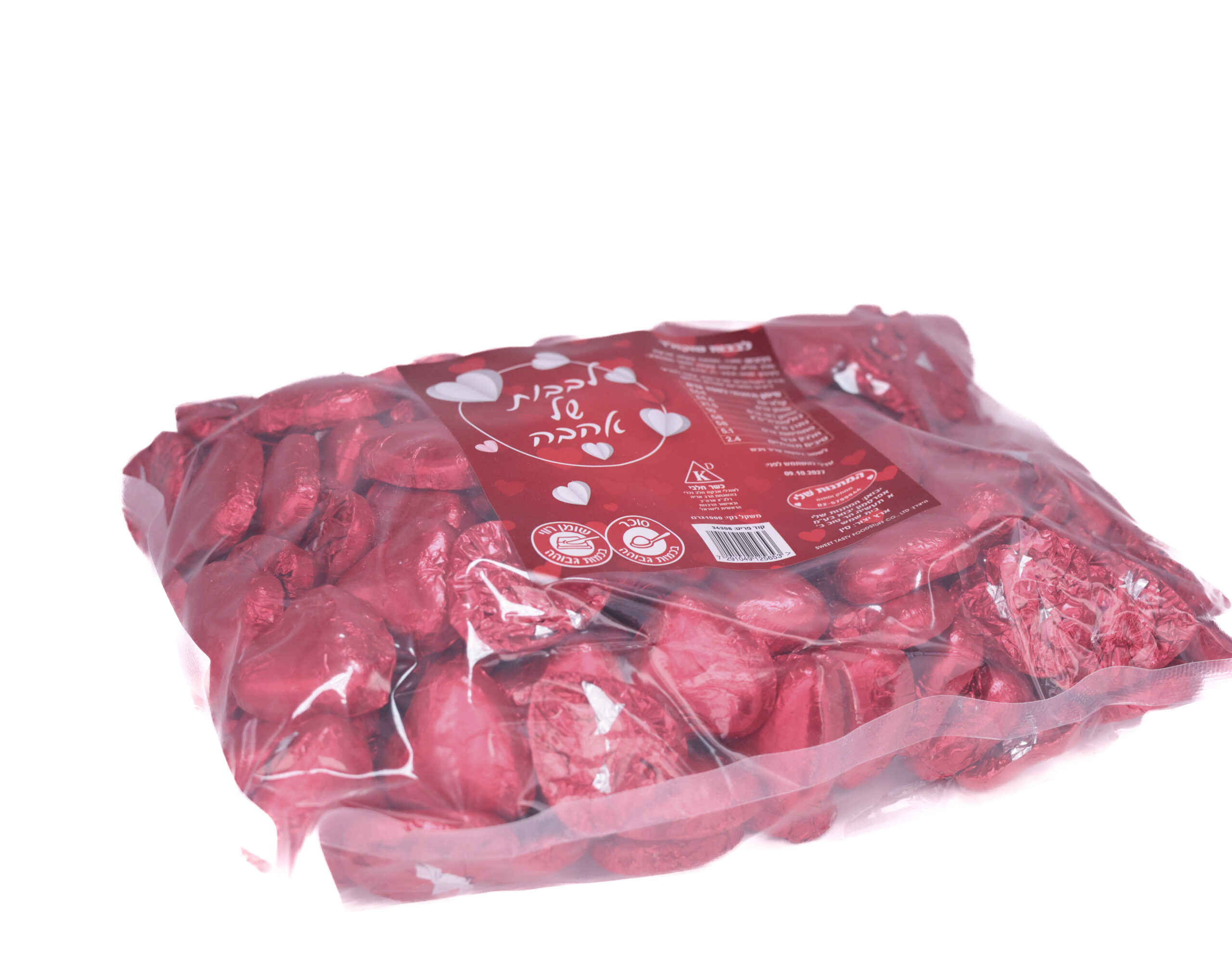 שקית קילו של שוקולדי לב עטופים בנייר, מושלמים להוספה למארזי מתנה, עיצוב שולחנות חגיגיים או כפינוק מתוק לכל אירוע. השוקולדים מגיעים בעטיפת לב אדומה חגיגית שמוסיפה מראה רומנטי ומרשים לכל מארז או קישוט.