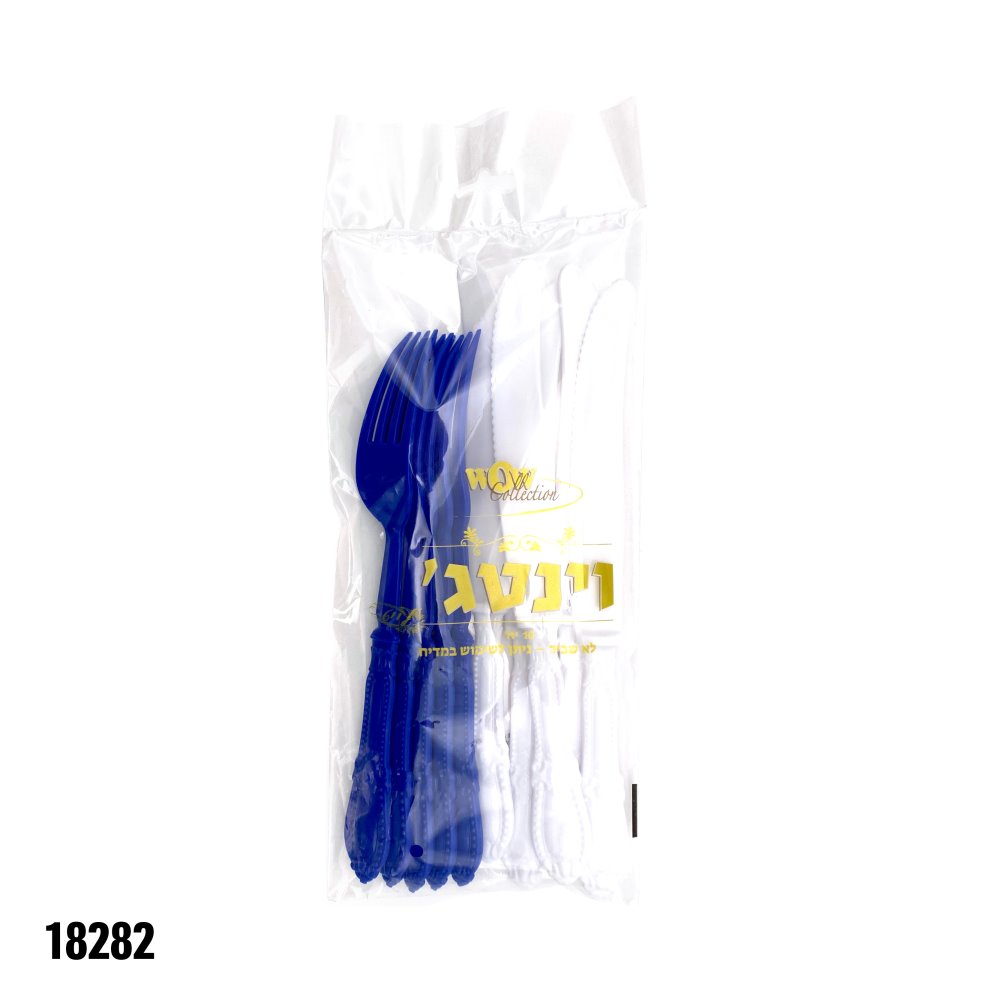 סט סכום וינטג' כחול-לבן ליום העצמאות – מזלג כחול + סכין לבן 5+5 יח'