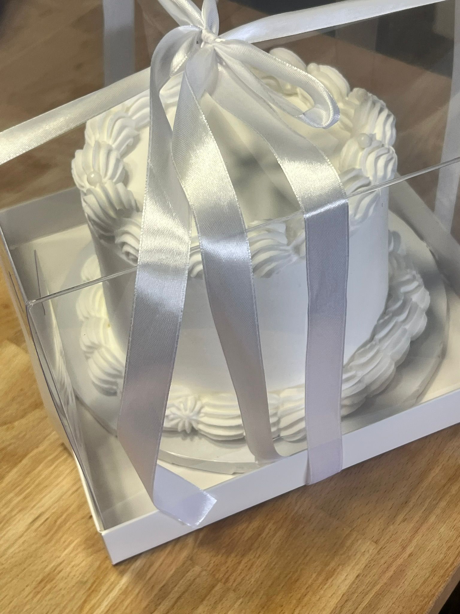 העוגה מגיעה ארוזה בקופסה יוקרתית עם סרט.