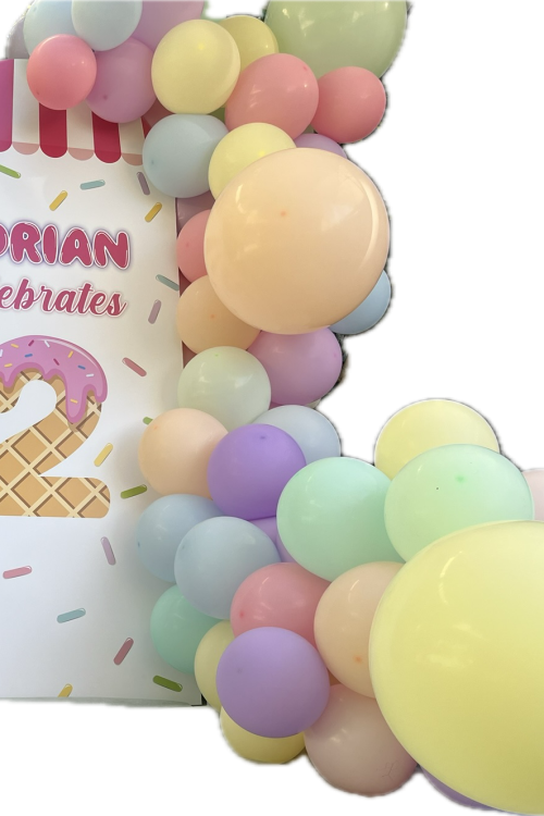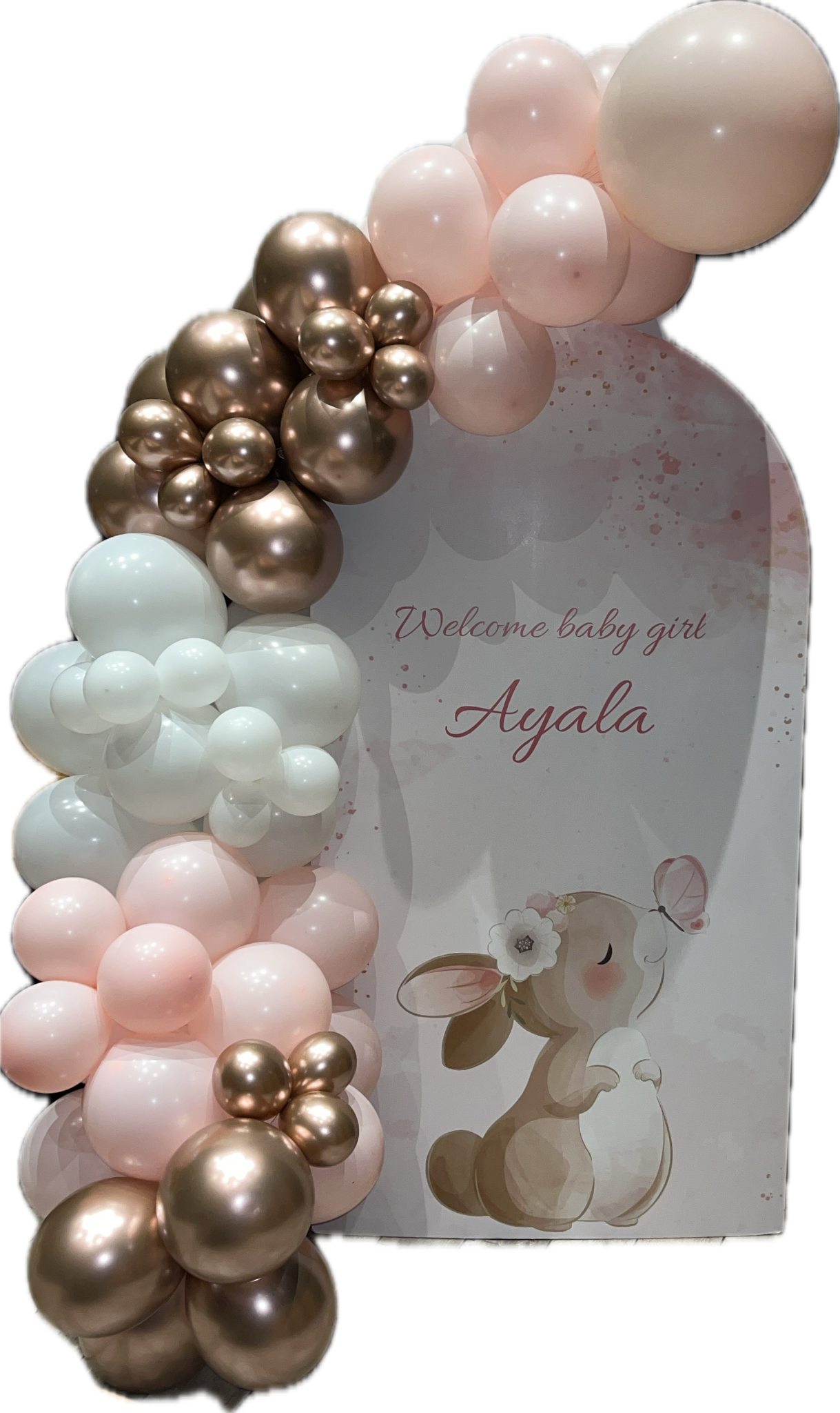 קיר צילום קאפה דגם ארנבונים מעוצב עם שובל בלונים