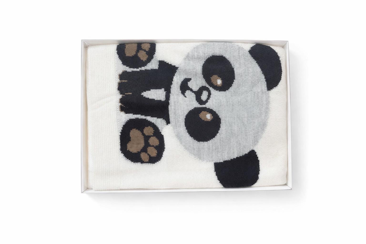 שמיכת תינוק סרוגה עם הדפס פנדה