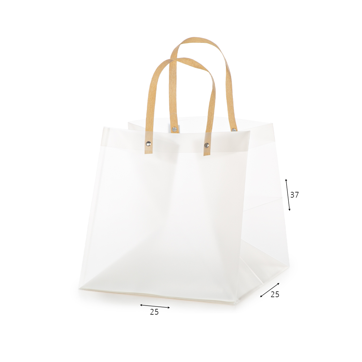 העיצוב השקוף מדגיש את המוצרים שבתוך השקית ויוצר מראה יוקרתי ומקצועי. הידיות החזקות מאפשרות נשיאה נוחה והמבנה הקשיח שומר על יציבות המוצרים בתוך המארז.